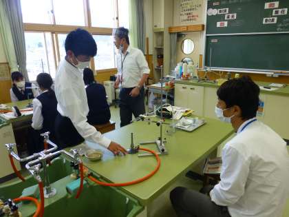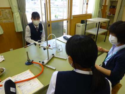 2年6限 理科 公開日 2021/06/01 更新日 2021/06/01 日々の活動から 6月1日(火) 2年生の理科は「酸化銅をガスバーナーで熱したらどうなるか」を実験しました。 スクールカウンセラーの先生も授業の様子を参観されました。 一時は試験管がとても赤くなって、怖がる女子もいました。