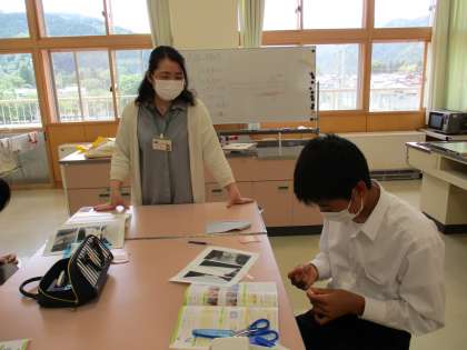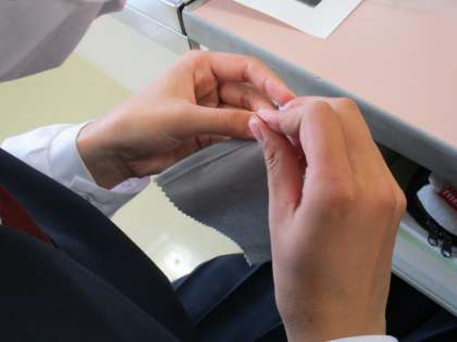 2年生の家庭科は、前回に続いて被服の補修について学びました。