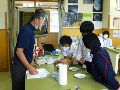 煮干しを取りに来る人、ビーカーに水を入れる人… 役割分担をしていました。