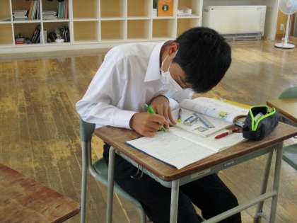 2年4限 数学 公開日 2021/06/03 更新日 2021/06/03 日々の活動から 6月3日(木) 2年生の数学では「連立方程式の利用」について学習しました。 問題の文章から連立方程式をつくり、解を求めます。 反復して学習することで、しっかり知識を定着させていました。 2年生は集中して、黙々と取り組んでいました。