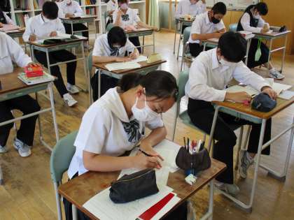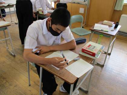 3年4限 国語 公開日 2021/06/03 更新日 2021/06/03 日々の活動から 6月3日(木) 3年生の国語の授業では、それぞれの課題にあった学習を進めていました。 家族の絆等をテーマとした3行詩を作っている生徒は、普段の生活で感謝していること等を心を込めて作成していました。 詩を読んだ全ての人が感動する詩となることを期待しています。
