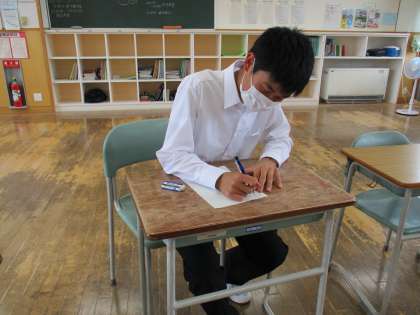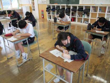 理科の基本的な知識を確認する検定で、事前に配付された対策プリントをもとに検定問題にチャレンジしました。