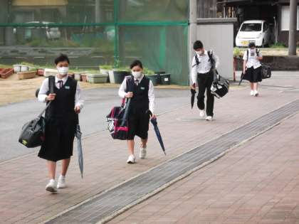 今朝は強い風の中、本校生徒たちは元気に登校してきました。