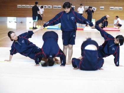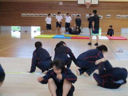 3年3限 保健体育 公開日 2021/06/04 更新日 2021/06/04 日々の活動から 6月4日(金) 3年生の保健体育は集団マットです。 かなり作品として仕上がってきました。 完成が楽しみです。