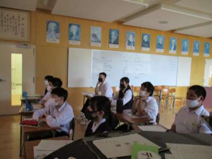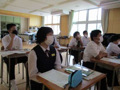 1年3限 音楽 公開日 2021/06/04 更新日 2021/06/04 日々の活動から 6月4日(金) 1年生の音楽の授業の様子です。 「声の声域や強弱、ピアノ伴奏のリズムなどの変化を聴き取ろう」という鑑賞の授業でした。