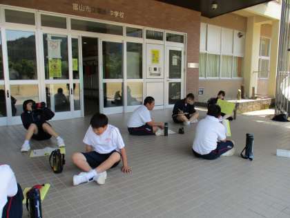 熱中症対策で途中休憩も挟みながら、自分たちのバトンパスについて振り返りを行いました。