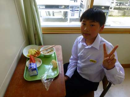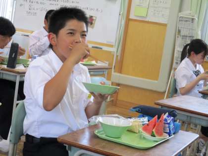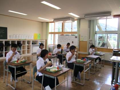 6月7日(月) 1年生の給食風景です。 放送当番の生徒もいました。