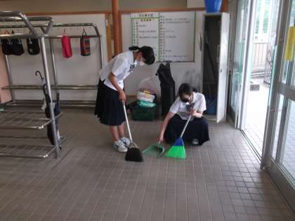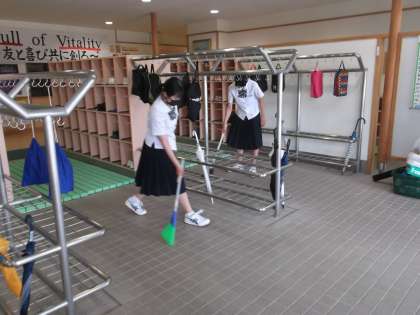 今朝の環境実践部の朝清掃は、2年生と1年生の女子が行いました。