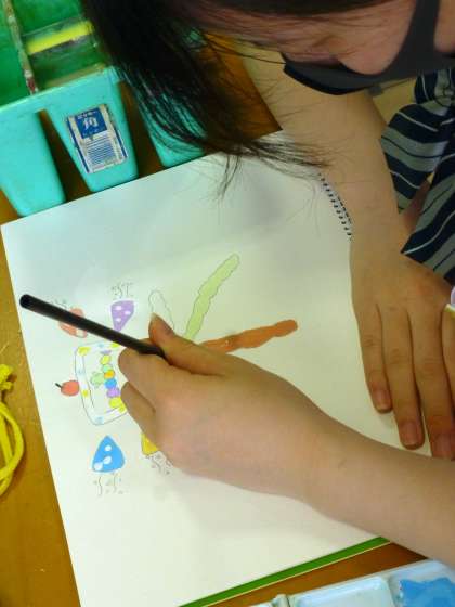 1年1・2限 美術 公開日 2021/06/08 更新日 2021/06/08 日々の活動から 6月8日(火) 1年生の美術の授業の様子です。 「漢字の意味を楽しく伝えるデザイン」が学習課題です。 楽しそうに色を塗っていました。 完成が楽しみです。