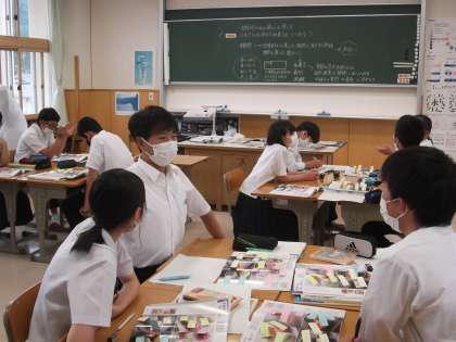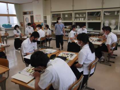 3年3限 美術 公開日 2021/06/08 更新日 2021/06/08 日々の活動から 6月8日(火) 3年生の美術の授業の様子です。 「季節感のある暮らしを楽しもう」というテーマの下「ふるさとの創作和菓子を創ろう」という学習課題です。