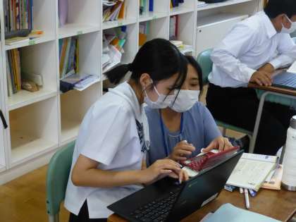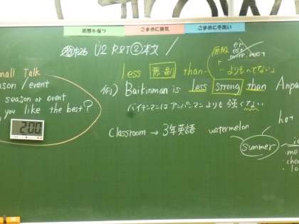 3年6限 英語 公開日 2021/06/08 更新日 2021/06/08 日々の活動から 6月8日(火) 3年生の英語はタブレットを使用して授業を行いました。 「…よりも〜でない」 less + 形容詞・副詞 〜(原形) + than …