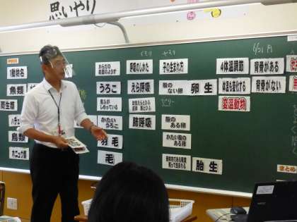 6月9日(水) 1年生の理科の授業の様子です。 動物の分類をしていました。