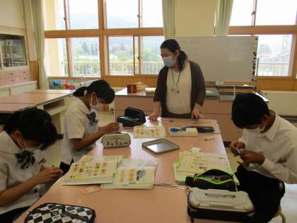 6月9日(水) 2年生の家庭科の授業の様子です。 スナップ付けを学びました。