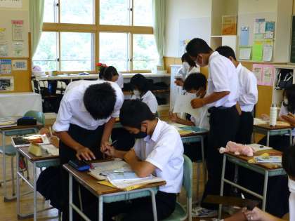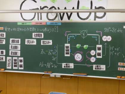 3年4限 理科 公開日 2021/06/10 更新日 2021/06/10 日々の活動から 6月10日(木) 3年生の理科の授業の様子です。 「電池の中で起きている化学変化について考えよう」という授業でした。