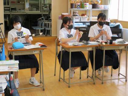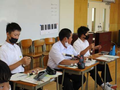 6月11日(金) 1年生の音楽の授業の様子です。 アルトリコーダーの演奏をしました。