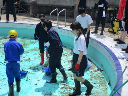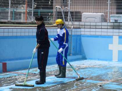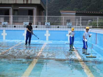 6月11日(金) プール掃除の様子です。 排水状況がよくなく、最初はとても苦労しました。