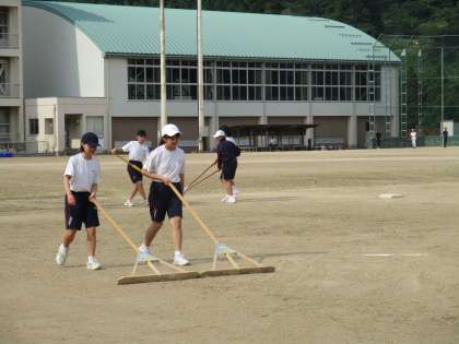 前半は基礎練習を行い、後半は明日の練習試合に向けてライン引きを行いました。現在のチームになって初めての練習試合なので、部員たちも気合いが入っていました。