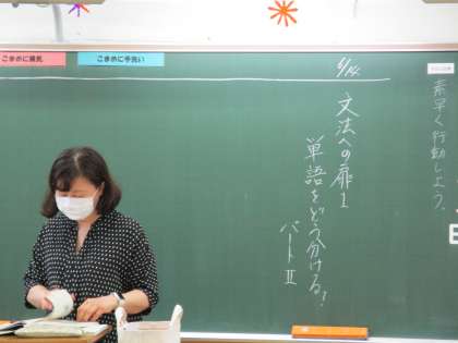 6月14日(月) 2年生の国語の授業の様子です。 「文法への扉、単語を分ける」という学習をしました。