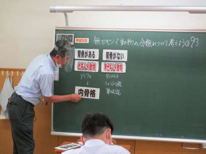 6月14日(月) 1年生の理科の授業の様子です。 「無セキツイ動物の分類」について学習しました。