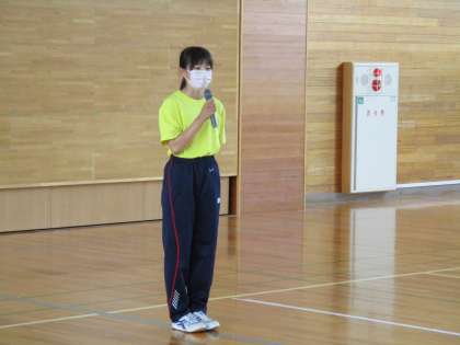 最初に生徒会長の挨拶です。