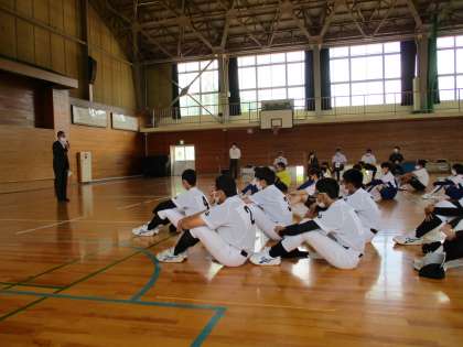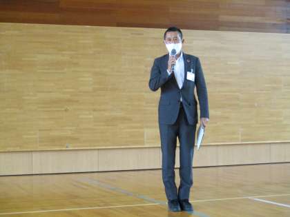 富山市中学校総合選手権大会 壮行会 公開日 2021/06/14 更新日 2021/06/14 生徒会活動 鍋田校長の「激励の言葉」があり、その後、市中体連から出されている「大会参加心得」を確認しました。