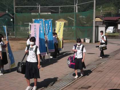 登校風景 公開日 2021/06/15 更新日 2021/06/15 日々の活動から 6月15日(火) 早いもので6月も折り返し地点となりました。 今日は15日ということで「挨拶運動の日」でした。 小学生にも元気よく挨拶の声を掛けて、活気ある学校にしようと頑張っています。 登校してくる生徒や児童も気持ちよく登校してきました。