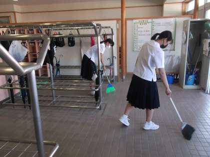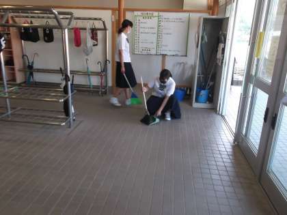 今朝は2年と1年の女子生徒が、生徒玄関掃除をしてくれました。
