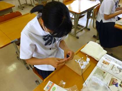 6月15日(火) 2年生の美術の授業の様子です。 各自の針金の骨組みに粘土で肉付けをしていました。