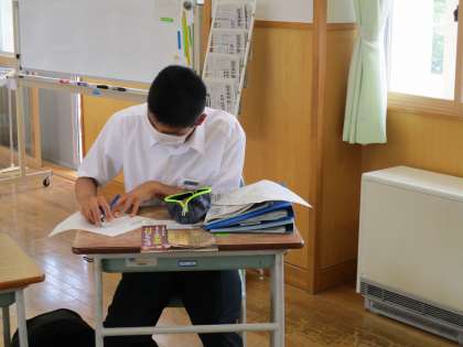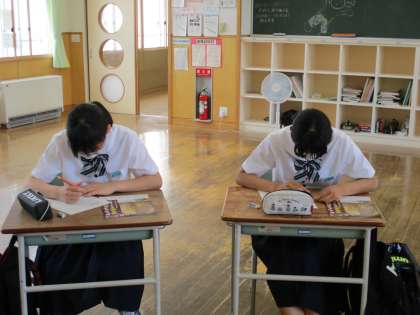 講演会終了後、教室に戻って感想を書きました。