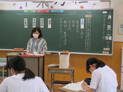 6月16日(水) 2年生の国語の授業の様子です。 活用しない自立語について学んでいました。