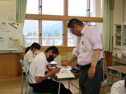 3年6限 数学 公開日 2021/06/16 更新日 2021/06/16 日々の活動から 6月16日(水) 3年生の数学の授業の様子です。 2次方程式の利用と2次方程式の解き方の復習をしました。 選択制の学び合い学習をしました。