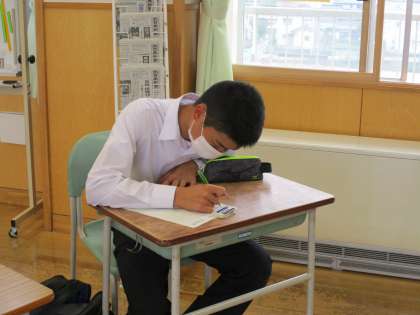 2年生 理科検定 公開日 2021/06/17 更新日 2021/06/17 日々の活動から 6月17日(木) 2年生の理科検定の様子です。 分子の化学式を書くテストでした。全員集中して取り組んでいました。