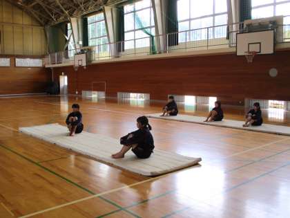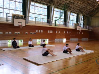 6月21日(月) 1・2年の保健体育の授業です。 今日からマット運動の合同授業が始まりました。