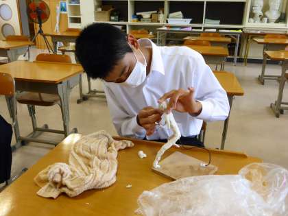 2年1限 美術 公開日 2021/06/22 更新日 2021/06/22 日々の活動から 6月22日(火) 2年生の美術の授業の様子です。 針金の骨組みに粘土で肉付けしています。 躍動感ある作品に仕上がりそうです。