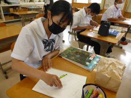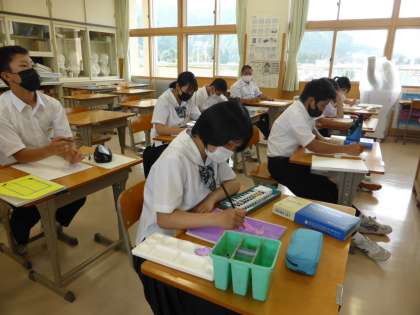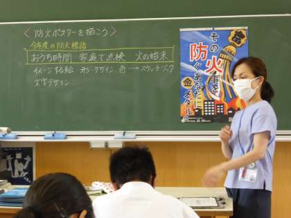 1年生の美術は「防火ポスター」のデザインを考えました。