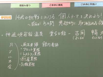 2年2限 「総合的な学習の時間(楡の木タイム)」 公開日 2021/06/22 更新日 2021/06/22 日々の活動から 6月22日(火) 2年生の「総合的な学習の時間(楡の木タイム)」は、「社会に学ぶ『14歳の挑戦』」の個人テーマを設定しました。 自分が5日間、意欲的に取り組める言葉を探し、テーマづくりをしました。