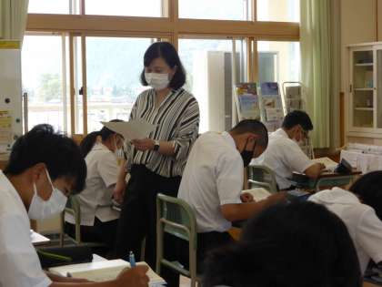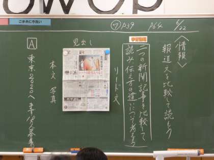 2つの新聞記事を比較して読み、伝え方の違いを考える授業でした。