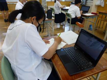 1年5・6限 「総合的な学習の時間(楡の木タイム)」 公開日 2021/06/22 更新日 2021/06/22 日々の活動から 6月22日(火) 1年生の「総合的な学習の時間(楡の木タイム)」の様子です。 SDGsのこれまでのまとめをしました。