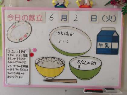 メニューボードには、調理員さんから以下の紹介がありました。