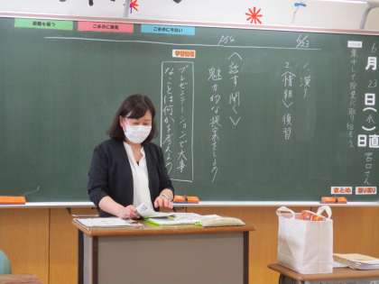 2年6限 国語 公開日 2021/06/23 更新日 2021/06/23 日々の活動から 6月23日(水) 2年生の国語の授業の様子です。 「プレゼンテーションで大切なことは何か?」という学習課題に取り組みました。