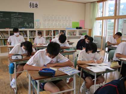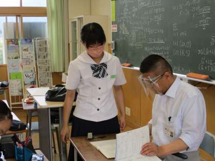 6月23日(水) 3年生の数学の授業の様子です。 昨日学習した「動点問題」の融合問題にも取り組みました。