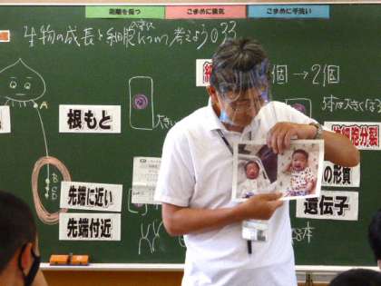 本校教員の子息の乳児の頃の写真を使って学習しました。