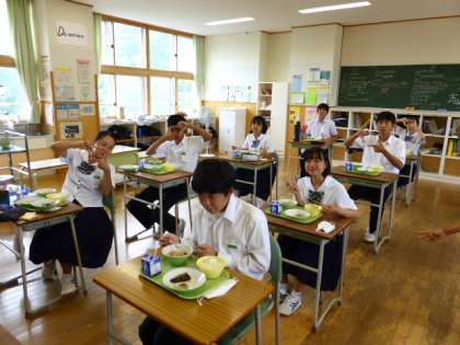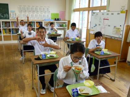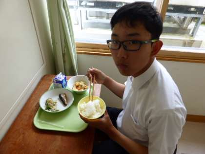 6月24日(木) 3年生の給食風景です。 放送当番の生徒もいました。