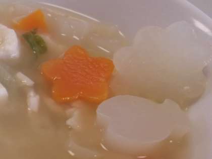 今日の給食 公開日 2021/06/25 更新日 2021/06/25 日々の活動から 6月25日(金) 今日の打ち豆汁は、型抜きのオンパレードでした。 「ハート」型の【豆腐】 「花」型の【にんじん】 「花」型の【大根】 「小魚」型の【こんにゃく】 きざみあえの中にも「星」型の【きゅうり】がありました。
