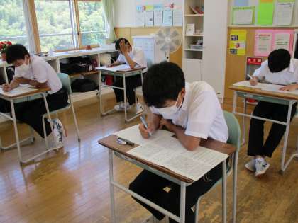 3年2限 国語 期末考査 公開日 2021/07/01 更新日 2021/07/01 日々の活動から 7月1日(木) 3年生の国語の期末考査の様子です。 3年生は受検生としての意識が高まり、積極的に学習の取り組むようになってきました。 進路を考える上で大切な期末テストを悔いなく取り組みましょう!