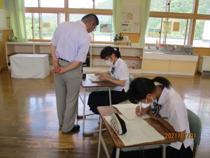2年4限 数学 公開日 2021/07/01 更新日 2021/07/01 日々の活動から 7月1日(木) 2年生の数学の授業の様子です。 返却されたテストの間違いを確認し、どうすれば問題を解けたか、個人の課題を確認し解き方の復習を行いました。