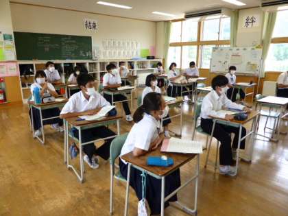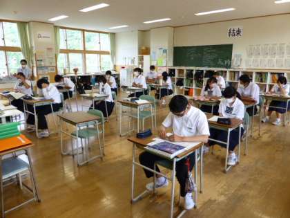 7月1日(木) 3年生の英語の授業の様子です。 期末考査の答案が返却されて解説を聞き、見直しをしました。
