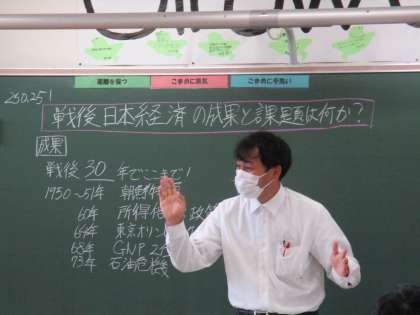 7月2日(金) 3年生の社会の授業の様子です。 「戦後 日本経済の成果と課題は何か?」