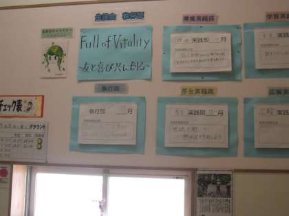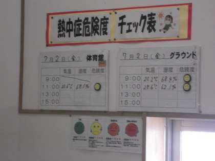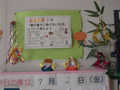 校舎内 掲示物 公開日 2021/07/04 更新日 2021/07/04 日々の活動から 7月に入って校舎内の掲示物が刷新されています。 給食掲示板は、7月の装いで七夕飾りとなっています。 また、梅雨入りして湿度の高い日々が続いています。 今年度も熱中症指数の危険度を示す掲示コーナーを設置しました。 最後は、生徒会掲示板は7月に更新されました。