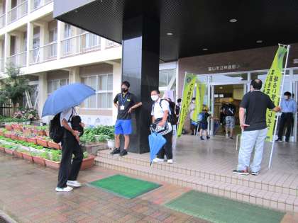 本日は、雨のあいにくの天気でしたが、あいさつのシャワーがたくさん注がれていました。